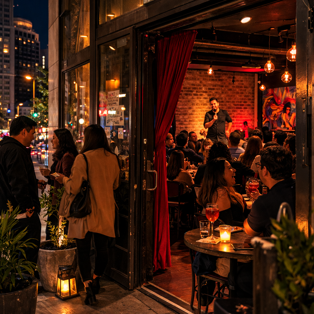🎭🍸 This is the kind of Friday plan that feels very SF: low-key, a little underground, and way more fun than another generic bar crawl. Secret-comedy energy, cocktails, a crowd that actually came to laugh. Not polished in a bad way — polished in a “you had to know” way. It feels like the kind of night locals keep for the right mood: intimate, slightly hidden, and much better than doing the obvious thing. 👉 Save this now, book ahead, and go when you want a night that feels insider instead of obvious. ⚡ Infa · happening now 👥 Recommended by real people 🎨 AI illustration image (for vibe)